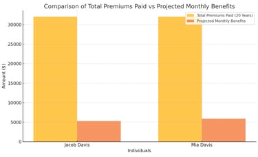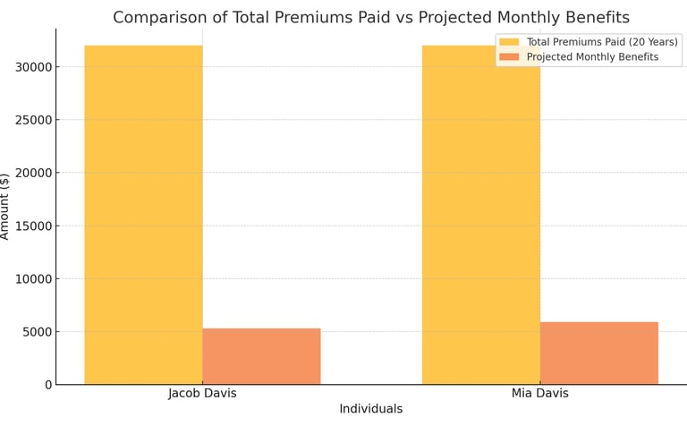 Meet Jacob, aged 42, and Mia, aged 45, realized the potential financial risks of needing long-term care and decided to invest in LTCi. Here’s a breakdown of their policy and benefits: